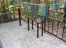 Так выглядит окончательный вариант места захоронения. По факту на этом участке мы переустановили памятники, восстановив одно из надгробий, покрасили оградку, замостили внутреннюю территорию брусчаткой и поставили лавочку со столиком. После окончания работ надписи на памятниках были дополнительно обработаны акриловой краской, это защитит их от пропадания в дождь и от пятен пыльцы растений и грязи.