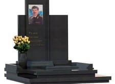 Строгий мемориальный комплекс из черного гранита генерал-майора МВД РФ на Троекуровском кладбище